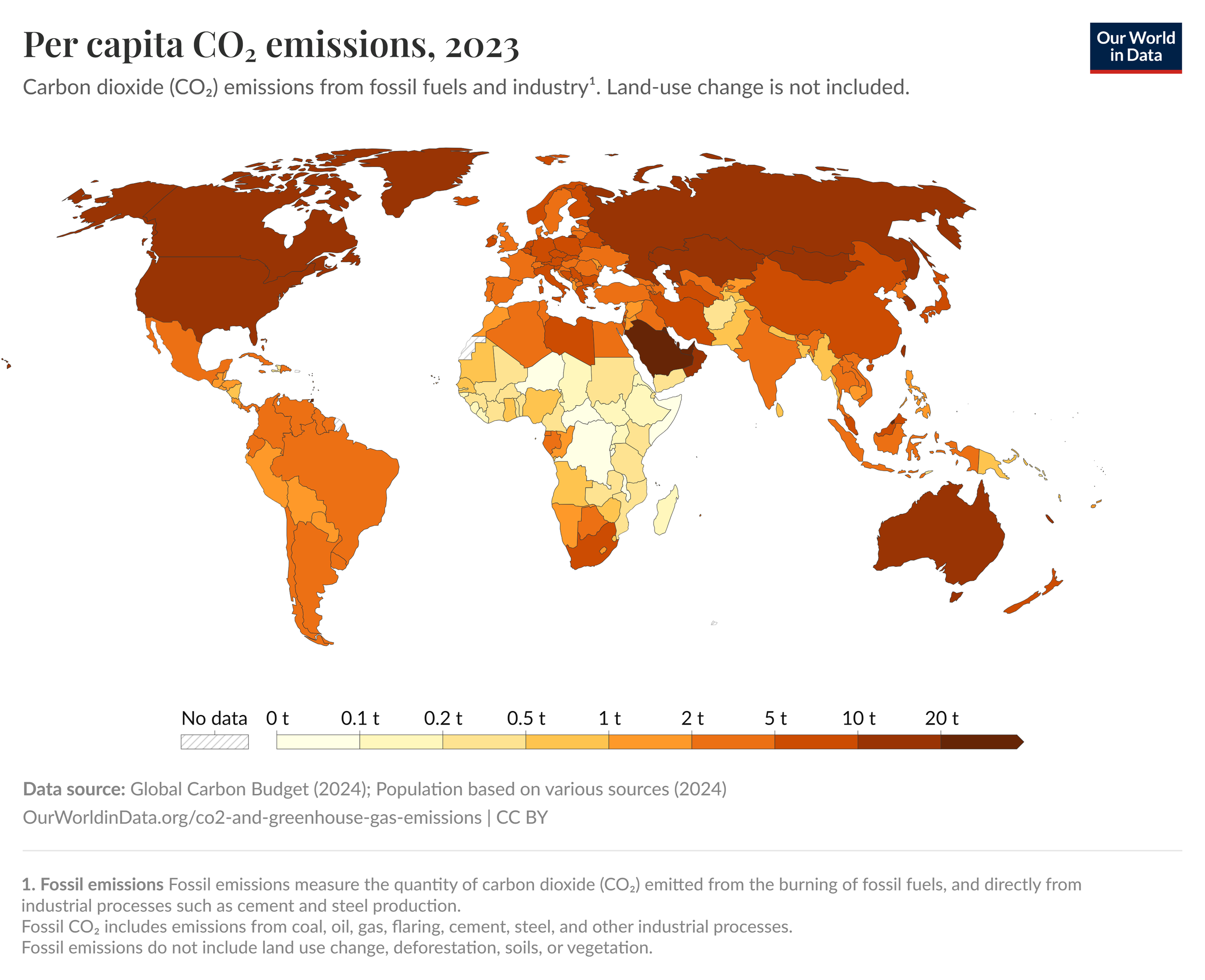 Emissão média de CO2 por habitante em todo o mundo: